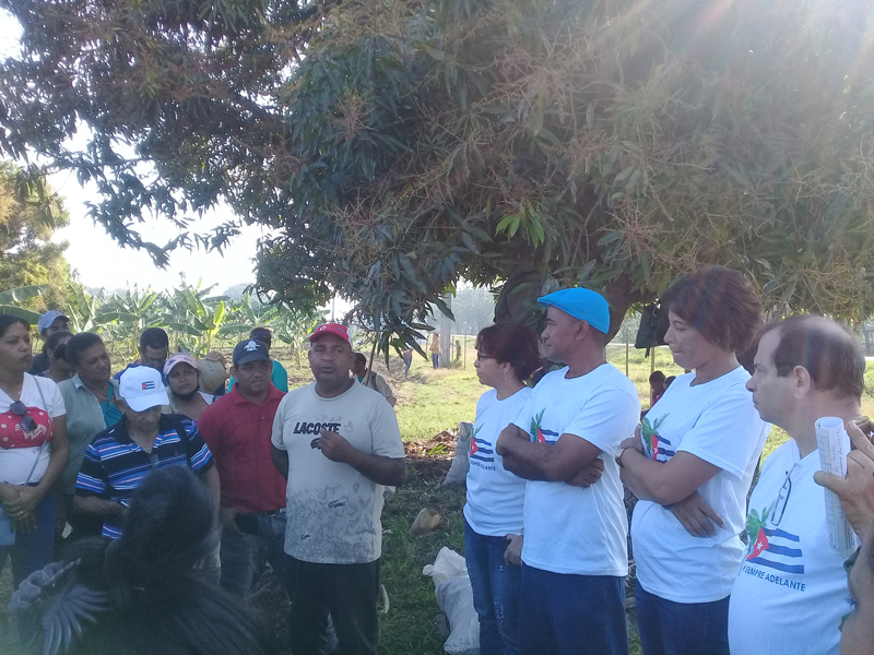 Una visita al área productiva en desarrollo "La Caoba" marcó el inicio del recorrido durante la jornada del 7 de febrero. Suyen Rodríguez Pérez, Yaney León Morales, Fernando González Llort, y Luis Marino Portuondo Ramírez, junto a las máximas autoridades del municipio Palma Soriano, conocieron acerca del trabajo que allí se realiza para producir alimentos. Sostuvieron un diálogo agradable y fructífero con trabajadores de esta área productiva, así como con obreros de otros sectores que brindan su aporte en esa noble tarea.